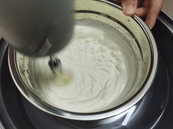 9. 之后就开始打奶油,奶油也是需要加入8g糖,但是奶油不需要分批加入也可以。