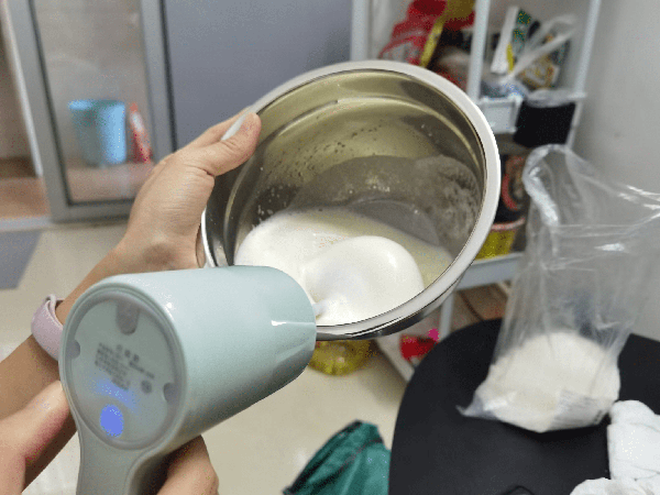 2. 食用油加牛奶彻底搅拌乳化成酸奶状