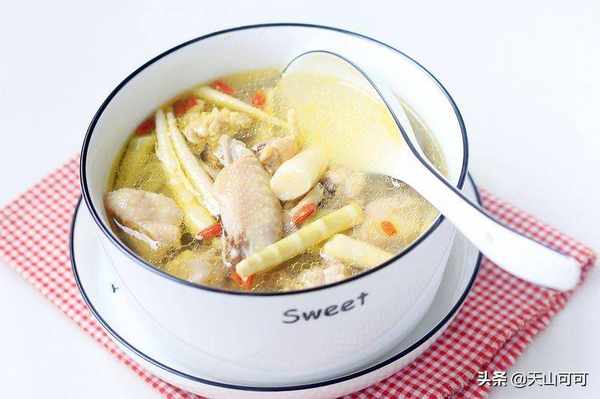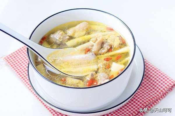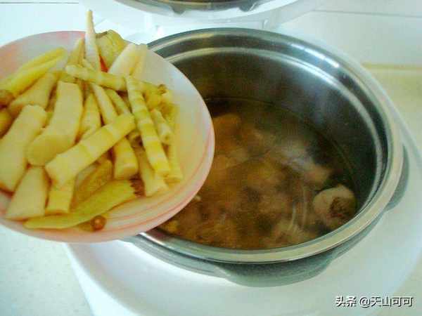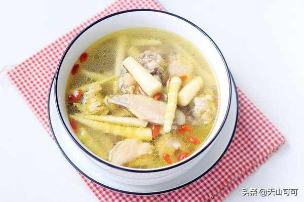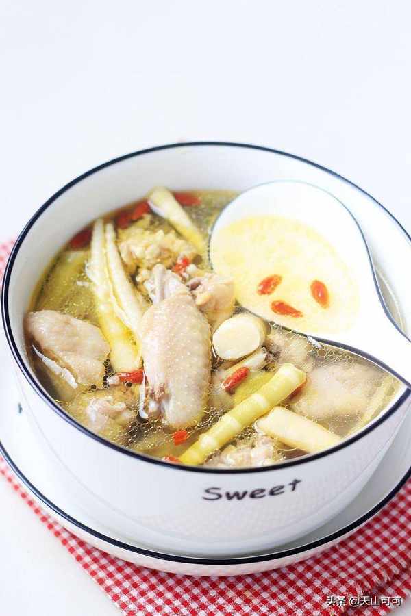 9、鸡肉熟烂带有笋尖的酸香味,营养又美味,全家都爱吃。