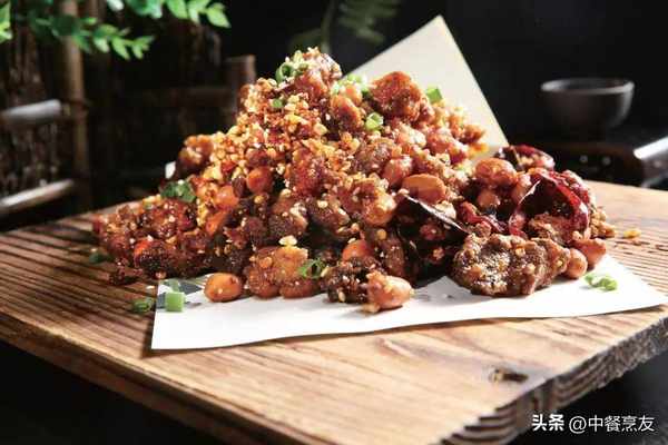 熟牛肉280克、干灯笼椒3克、干锅酱30克、油炸花生米50克、辣椒籽50克、熟花生碎50克、白糖1克、十三香1克、胡椒粉1克、孜然粉2克、红油50毫升、花椒油30毫升、芝麻油10毫升、葱花、味精、鸡精、脆浆粉、自制白卤水、色拉油各适量