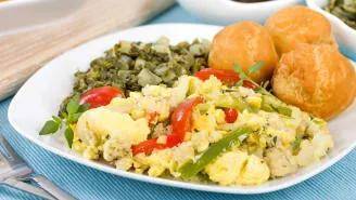 Ackee是一种精致甜美的梨形水果,在早餐炒菜中与盐鳕鱼,西红柿,大蒜,辣椒和洋葱一起炒,将甜,咸和辣结合在一起,具有独一无二的岛屿风味。虽然它看起来与炒鸡蛋相似,但这只是这道菜中的奶油黄色阿基,牙买加的国果。