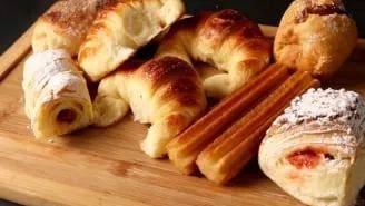 一些更受欢迎的产品包括 medialunes,一种羊角面包形状的奶油蛋卷糕点;邦巴斯和波拉斯德弗拉耶,或油炸甜甜圈;和油条,通常蘸巧克力。许多都装满了牛奶或奶油酱,一种香草奶油冻。