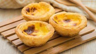 虽然许多葡萄牙人在喝酒的同时有一块简单的吐司或面包,但这些牛奶咖啡的完美搭配是 pasteis de nata,或蛋羹蛋挞。带有片状酥皮糕点外壳和奶油蛋奶馅,它们同样受欢迎,可作为上午 11 点咖啡馆休息的小吃,这是另一种葡萄牙早晨仪式。