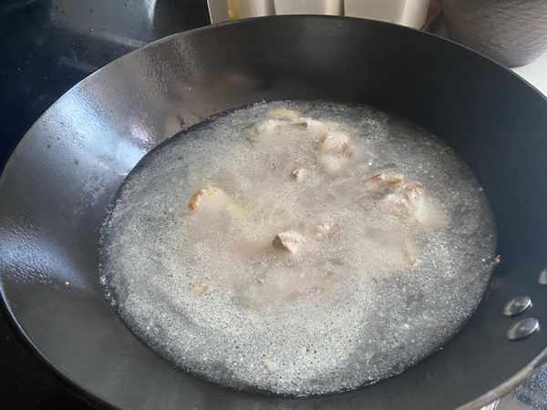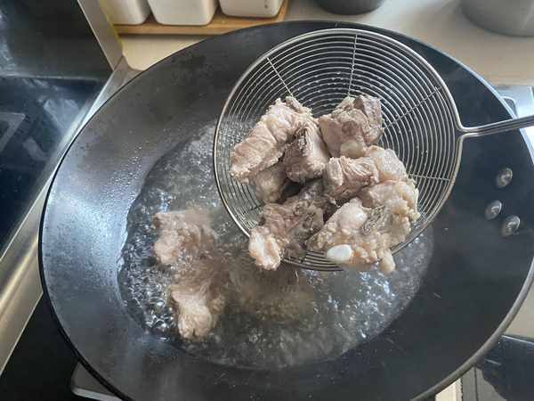 步骤1:排骨清洗干净,冷水下锅,加些料酒,烧开后撇去浮沫,再捞出排骨备用。