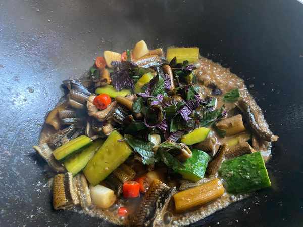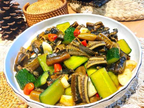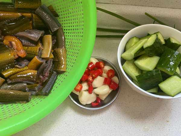 食材:黄鳝、黄瓜、辣椒、蒜、紫苏、料酒、酱油、醋、白糖、盐、食用油。
