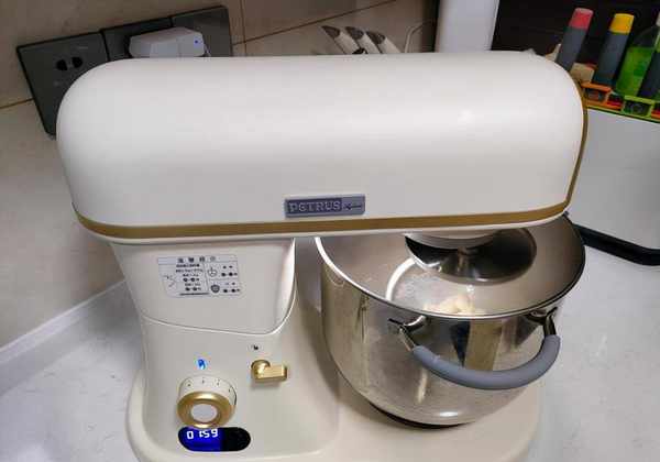 由于水分含量高,立式搅拌机中的面团很粘。没关系,用手拿出来,揉两下,就顺滑了。