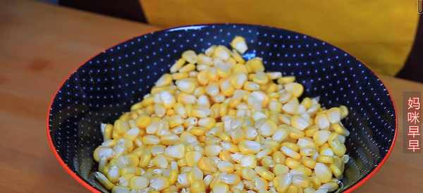 1、准备2粒玉米,剥去玉米粒,因为果粒玉米比较嫩,所以剥的时候要小心,不然剥下来的会碎。这个过程也需要一定的耐心。将去皮的玉米粒用水焯1分钟,捞出放入清水中。