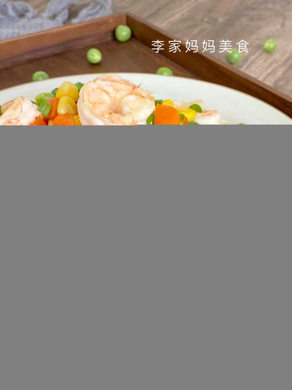豌豆、胡萝卜和玉米炒虾