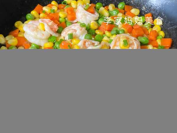 用豌豆、胡萝卜和玉米制作炸虾的技巧: