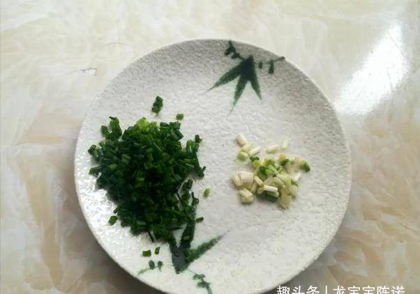 3、葱花洗净切出白色和葱花,切小块。喜欢大蒜的可以加点蒜末。