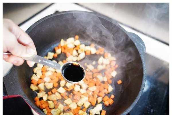 12.舀入15ml淡盐酱油翻炒均匀
