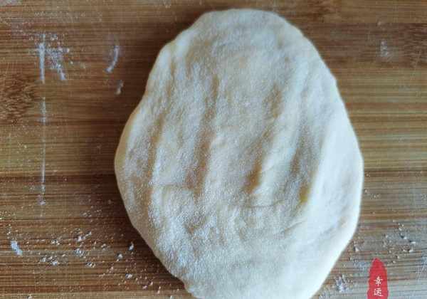 5、取出一份面团,用手掌压住,从上往下卷起来,对折,揉合,收口,搓圆。