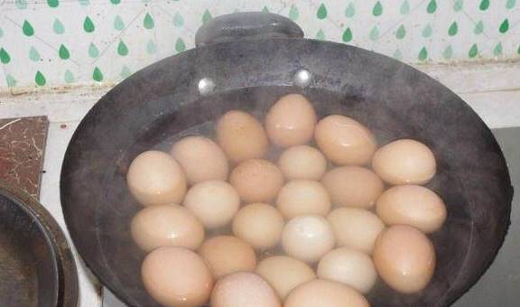 鸡蛋清洗干净,锅子里放清水,放入鸡蛋大火煮开,改小火把鸡蛋煮熟“我每次煮二十个左右”