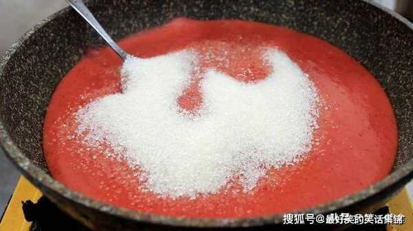 4.把山楂果打成果酱,倒在平底锅内,开小火,
