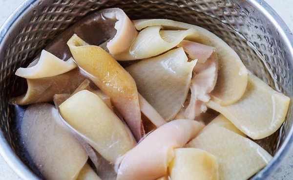 将购买的猪皮用清水冲洗干净,然后起锅烧水,水开后将猪皮放入锅中,接着加入适量葱段、料酒、切好的姜片炖煮30分钟,这样能够彻底去除猪皮的腥味。很多人不喜欢吃猪皮,主要是因为猪皮的气质比较腥,通过这种做法能够很好地去除猪皮的腥味,做出来的猪皮口感会非常好吃。