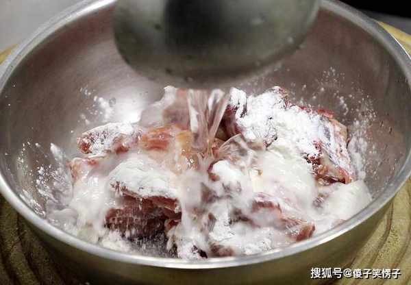 1.准备排骨500克,剁成均匀小块放入盆中,加入食盐2克,干淀粉50克,少许清水抓拌3分钟,干淀粉遇湿能充分吸出排骨中的血水,把排骨放在清水中多洗几遍,洗净排骨的血水和残留的淀粉。