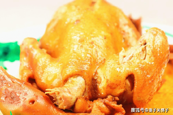 6.1个小时以后把烧鸡取出来,均匀浇上汤汁,这道鲜嫩脱骨的自制烧鸡就做好了。