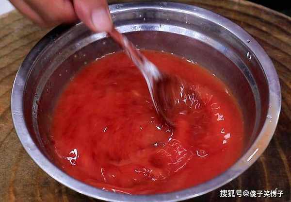 3.碗中放入番茄酱20克,加入白糖15克,白醋15克,喜欢吃甜一点的,白糖可以多放一点,加入适量的清水,放入一勺淀粉,搅拌至酱料全部融化。