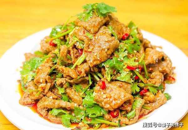 5.把牛肉捞出来放入盘中,浇上调好的料汁,再倒入香菜段,翻拌均匀,这道鲜嫩滑口的凉拌牛肉就做好了。
