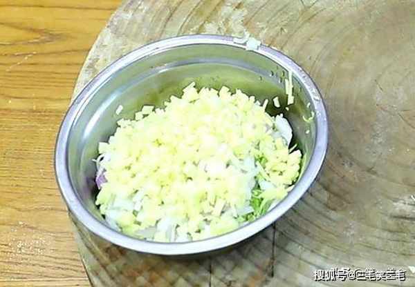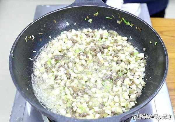 ,切成均匀的碎丁,牛肉最好选用带点肥肉的,这样吃着更香,而且要手工切,直接用搅出来的肉馅太碎,会影响口感。