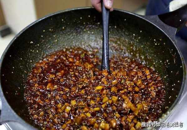 ,把所有的食材都熬干水分、熬至干香,酱料才会散发出浓郁的香味,出锅前