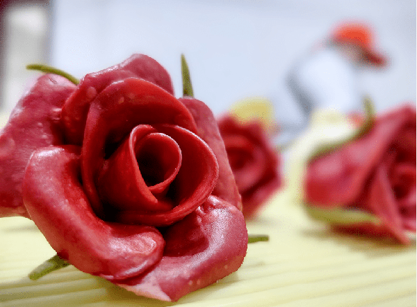 花艺馍馍的颜色除了利用火龙果、南瓜、菠菜、紫薯等天然水果蔬菜汁进行调色外,还会用价格较贵的天然仙人掌果粉,不但色香味俱全,还有利于人体健康。