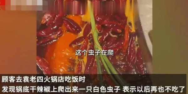 湖南,衡阳。女子去吃火锅,发现锅底辣椒里爬出一只白色的虫子,看着十分吓人。店家回应:不是蛆,是干辣椒里生出的蛋白质比较丰富的虫子,没清理干净,理解一下。