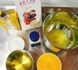 将面粉与玉米淀粉加入蛋黄液中,搅拌均匀,无颗粒即可