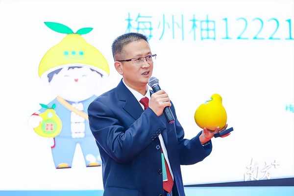 “我手上的梅州柚是去年11月7日立冬时采摘下来的,在自然条件下存放了四个月依然保持新鲜不失香气,是‘天然的水果罐头’。” 梅州市农业农村局副局长陈爱东走上台向粤港澳大湾区推介梅州柚。陈爱东早在四年前就被称为“柚子局长”,是第一批直播带货的局长。他多次出镜介绍梅州柚的生长环境、特征、生产标准,致力于打造专家型IP,推动梅州柚成为令消费者信赖的品牌。