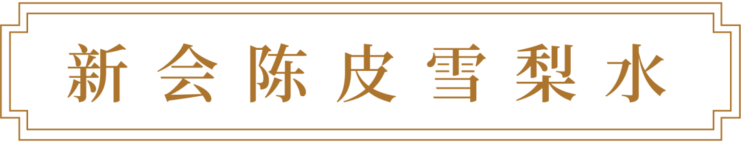 新会陈皮,性苦、辛,温,归肺、脾经,理气健脾,燥湿化痰[3]。新会陈皮与梨搭配时,粤菜师傅常推荐做“新会陈皮雪梨水”,是一道润肺开胃的良品。雪梨肉厚软,带有清甜果香,适合用来炖,而新会陈皮的挥发油丰富,香气独特,为入膳佳品。下面介绍两者搭配的做法——
