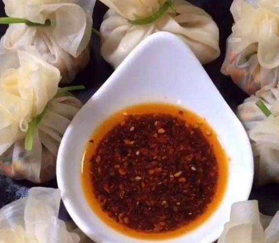 一个个给包好,全部包好之后,吃的时候沾的辣椒油。