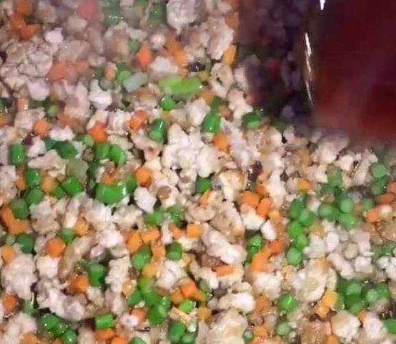 再把肉末下入锅中炒,炒到肉末分享,然后下入蒜末炒。