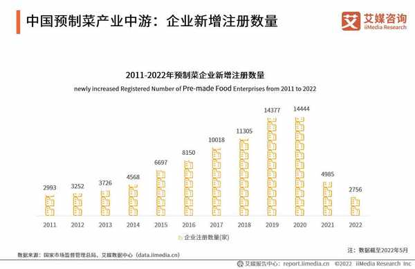 数据显示,2011-2020年,预制菜企业注册数量逐年递增,近两年受疫情影响,有所减少,2022年全国现存预制菜企业数量超7万家。预制菜企业普遍分布在沿海省份, 其中,山东省(7974家)的预制菜企业数量居全国第一,其次为河南省(6317家), 广东省预制菜相关企业也超过 6000家。