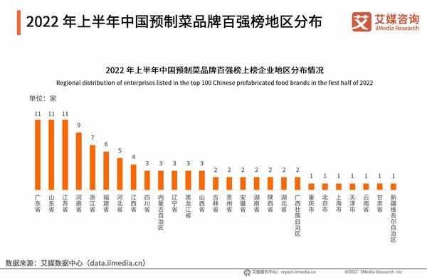中国预制菜产业中游企业数量分布概况