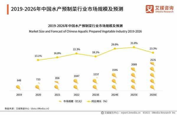 数据显示,2022年中国水产预制菜行业规模为1047亿元,同比增长22.3%,预计未来中国水产预制菜市场保持较高的增长速度,2026年水产预制菜市场规模将达2576亿元。水产品预制菜食材品种广泛,表现空间很大,开发价值高。