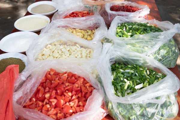 杀猪、买菜、洗菜、刷锅、切肉、做饭......员工们幸福的忙碌着。
