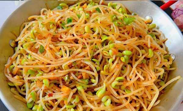 4、这道凉拌豆芽,酸香爽口,清脆开胃,超级无敌好吃,巨下饭。大家一定要学会这道家常菜,随意拌一拌就完成了。