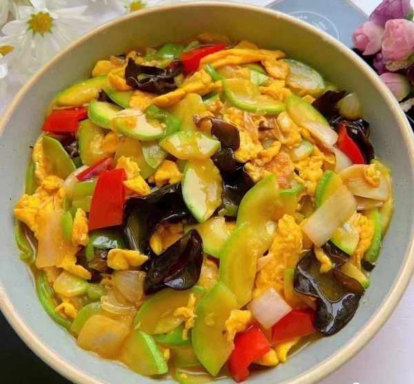 5、这道西葫芦炒蛋,多种食材混合,营养又好吃,而且还不怕长胖,是比较清淡爽口的家常菜。