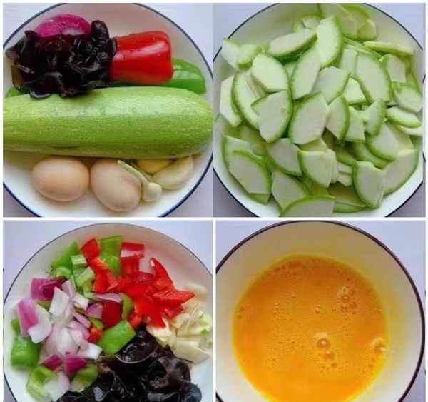 准备食材:西葫芦、鸡蛋、木耳、青红辣椒