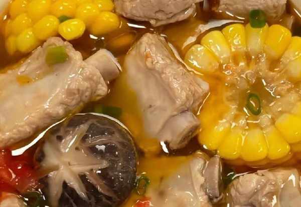 3、起锅烧油,油热后放入番茄翻炒一会儿,炒出汁后放入排骨翻炒一会儿,炒半分钟后放入玉米、香菇和足量清水,盖上盖子炖煮一个小时。