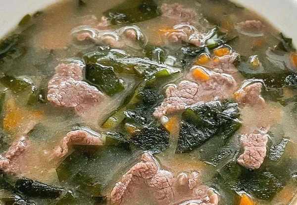 准备食材:牛肉,裙带菜,姜丝,蒜末,胡萝卜。