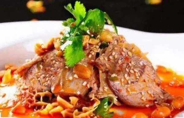 夫妻肺片是四川省传统的一道凉菜,由牛腱、牛心、牛筋、牛舌、牛肚、牛百叶、豆皮等原料制成,口感爽脆,香辣可口。夫妻肺片最重要的是调料,其辣椒油、花椒粉、蒜泥等调料都要配合得当,才能让夫妻肺片口感更好。