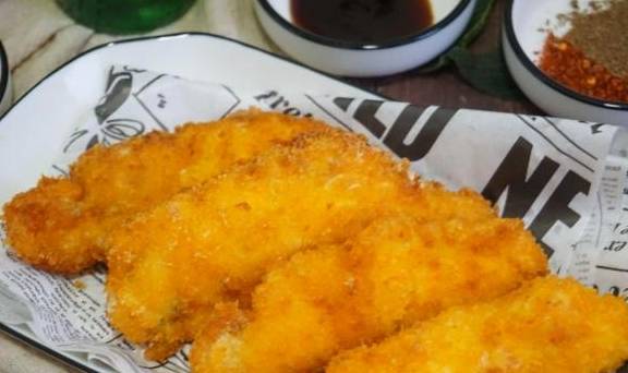 食材:鸡胸肉6块(鸡小胸更嫩),胡椒粉1小勺,料酒半碗,姜汁1汤匙或者姜片若干片,盐1小勺,鸡精1小勺。切达芝士片2-3片。玉米淀粉适量,鸡蛋1个,面包糠适量。调味料:可以选番茄沙司,孜然,辣椒粉,甜辣酱,蛋黄酱等自己喜欢的味道。