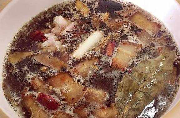 3、然后放入砂锅里,让如生姜,蒜片,大葱,加入适量水,煮一下,当水少了一半的时候,挑出配料,继续煮一会儿,当汁收得差不多了的时候,就可以起锅了。