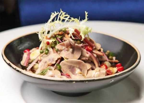 原料:猪腰2个蕨菜150克青小米椒圈、红小米椒圈各15克鲜花椒、苦苣菜各10克盐、白酒、姜片、葱段、味精、白糖、辣鲜露、鲜味汁、味精、藤椒油各适量