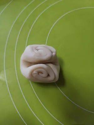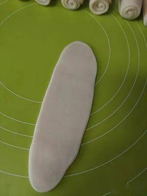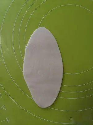 按扁,擀成图片上的样子,从中间下手,上面的往上擀,下面的往下擀。