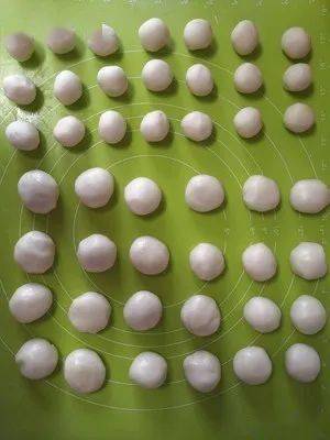 哈哈,这样的分量是不是超好记,22 ,11 ,22, 11,这样一颗成品大概80克左右。16个的量。