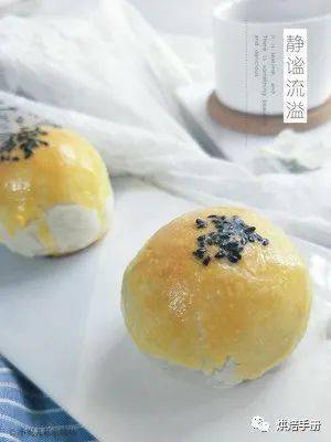 我麻薯也擀薄一点,这样后面放几天,不会太容易就硬了,按照图片上面这个顺序放,不太容易会烤爆。