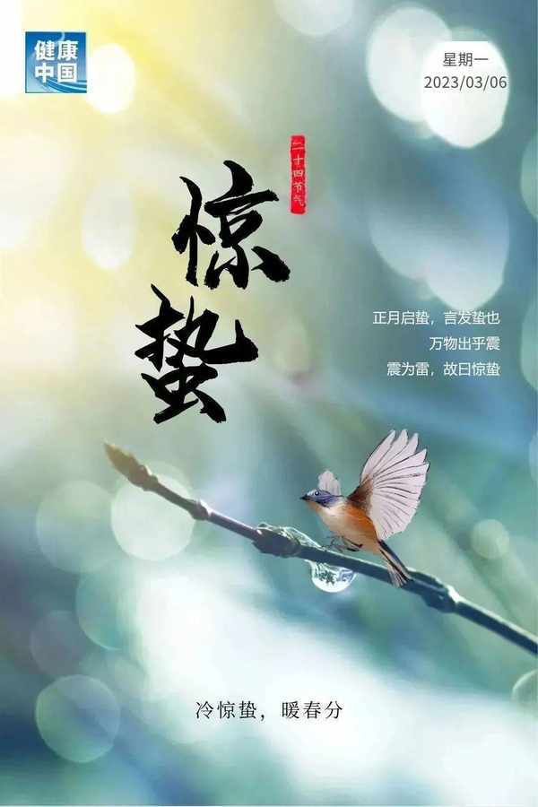 ●惊蛰,又名“启蛰”,是二十四节气中的第三个节气。 惊蛰时节,春气萌动,大自然有了新的活力,这个时候阳气上升、气温回暖、春雷乍动、雨水增多,万物生机盎然。