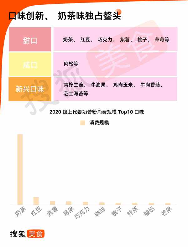 除包装之外,口味的研发成为品牌在产品创新方面的重要发力点。甜口以奶茶味、各种水果味为主,随之而来的还有各种新兴口味。在2020年CBNData发布的消费报告中,奶茶味成为消费者最喜爱的口味。